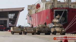 The information was released by Georgia’s Ministry of Defense (MOD), which says that US armored vehicles “Stryker”, armored vehicles “Bradley”, M1A2 Abrams tanks and other military equipment have been already unloaded in Poti Port, West Georgia.