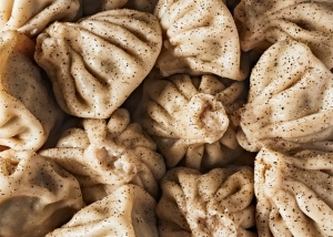 It also explains that the filling of khinkali is a deeply savory mix of beef, pork shoulder, garlic, onion, Georgian red pepper and fresh cilantro.