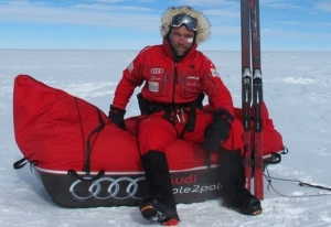 His theme for the evening, and the theme that he brings to his lectures around the world, was simple: Nothing is Impossible. “Failure”, he says, “is only delayed success.” His life became before our eyes both a drawn-out adventure story and a motivational speech. The most recent adventure, during which he traveled on his own power, on foot and by bike, from the north to the south pole, provided a centerpiece for the evening, but easily the most crowd-pleasing story came from earlier in his career, when he successfully piloted a makeshift aircraft, constructed apparently of a hang-glider and a rubber boat, from Stockholm to Gibraltar. Of all the images he showed, none more strikingly encapsulated his message that “Nothing is Impossible” (only difficult) than the sight of a grey rubber dinghy flying above a squadron of Danish fighter jets.