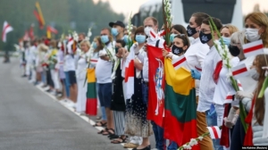Lithuanians stood in a human chain stretching more than 30 kilometers from Vilnius to the border with Belarus on August 23 in a show of support for protesters in their neighboring country who are calling for the end of President Alexander Lukashenko’s rule.