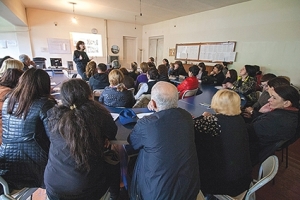 The presenters gave a detailed overview of how Peace Corps works, the application process for potential volunteers, host families and communities; and let us know that this process would re-start for Svaneti this September, meaning inflows of successful applicants a year after that, so, September 2018 or so. There were a number of quite pertinent questions, about why neither school directors nor English co-teachers could host (conflict of interest) and about “orientation” (referring coyly to gender issues; vetting and training of all parties would be thorough, we were assured, although Peace Corps is thoroughly equal-opportunity…). They asked us to consider at least three good possible host families for each potential host community, none of whose homes shall be more than 45 minutes’ walk from the host school as a rule. Information packets circulated and were also promised online; a few more questions and words of thanks; then it was over and we were dismissed to greet one another and disperse.