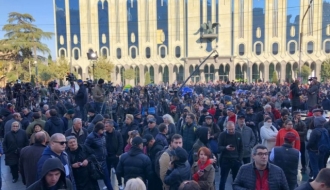The demonstration is underway on Rustaveli Avenue...
