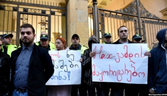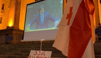 Protests are taking place at the Rustaveli Avenue, in front of the Parliament...