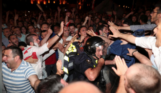 Thousands of protesters gathered in front of the parliament building in Tbilisi yesterday afternoon after a speech...